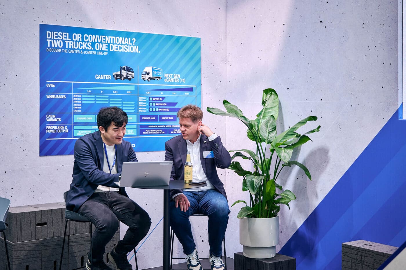 Trucks for the specific requirements of the construction industry must not be missing, and they do not have to be particularly large or heavy, but “only” tailored exactly to the needs of the corresponding customers. This is proven by the FUSO team, for whom bauma is a set date every three years. With a total of three Canter and eCanter vehicles in industry-relevant configurations, experts from the areas of product management, sales, bodybuilder management and marketing are on site.
