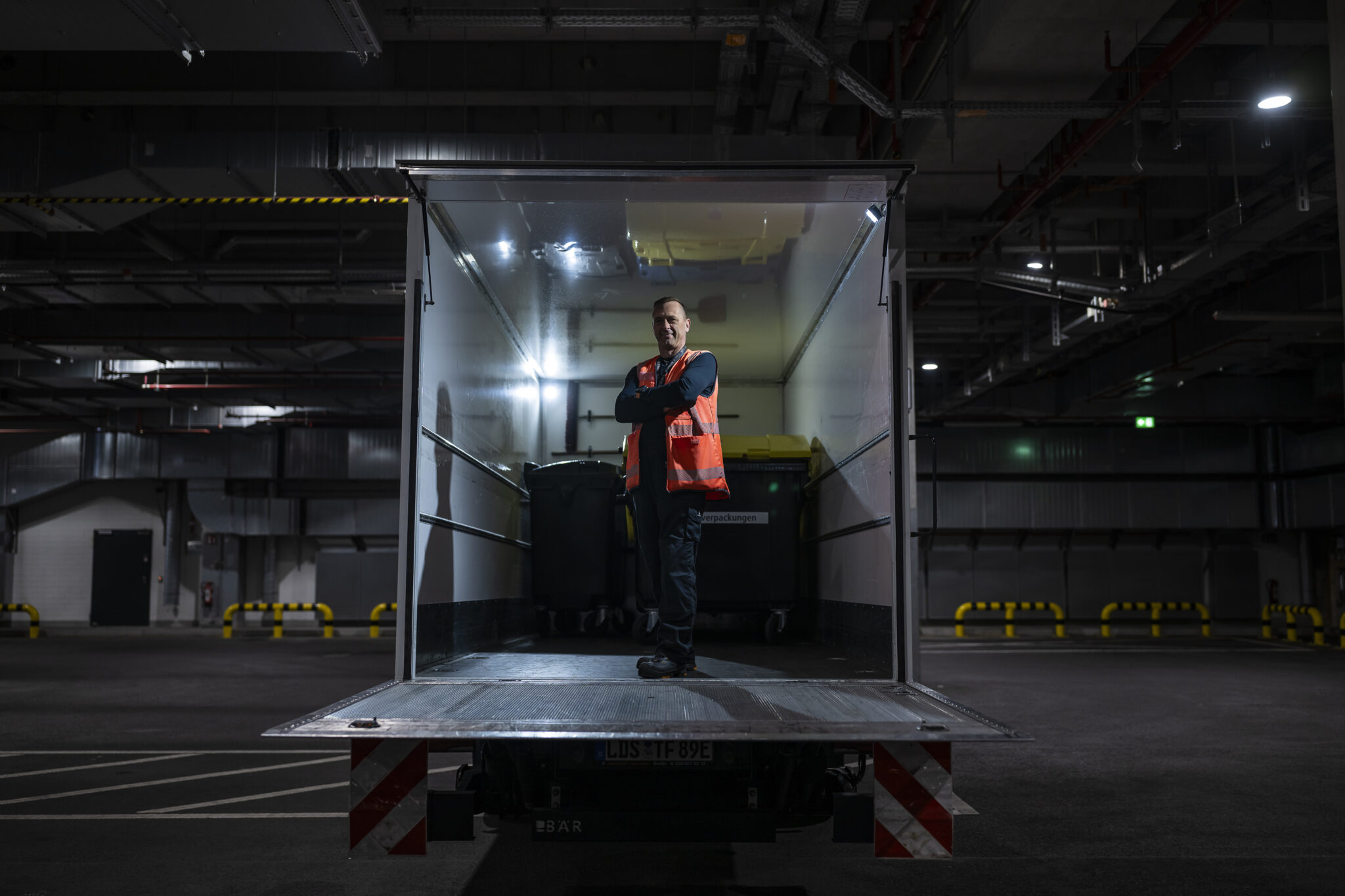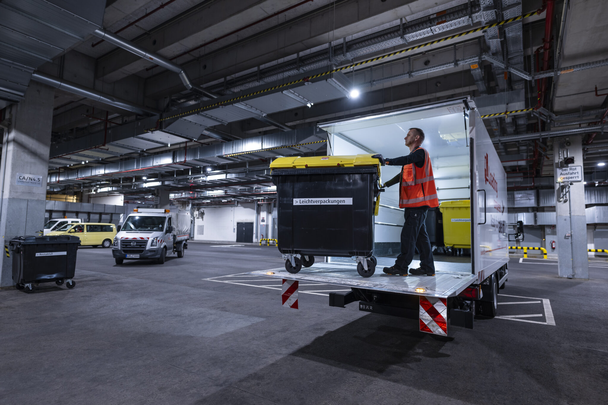 The standard fractions are mainly produced. paper, cardboard, glass, plastic packaging and residual waste. This also includes food leftovers from restaurants and canteens, biodegradable waste, but also things such as file shredders from the offices, scrap, bulky waste and much more. For example, aerosol cans or batteries and other items whose journey ends at the hand baggage check. Special containers with hazardous waste such as waste oil or collected residues from aircraft turbine cleaning are also on the list and special requests often come from customs. “If they seize something that is not allowed to be imported, exotic plants, seeds, animal products, then we take them directly to a corresponding external disposal plant in the Berlin area,” explains Artur Heldt and adds, “which is why we chose the M battery package with two batteries and a range of up to 140 kilometres for the eCanter, even though package S would have been sufficient for us in theory. But this way we always have a buffer for such cases and only have to charge every two days in daily operation.”